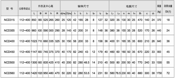 NCD型齿轮箱外形及安装尺寸(560-2000)mm