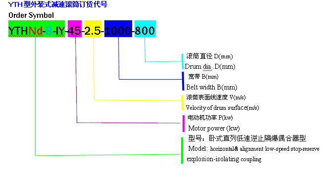 YTH型外装式减速滚筒分类表: