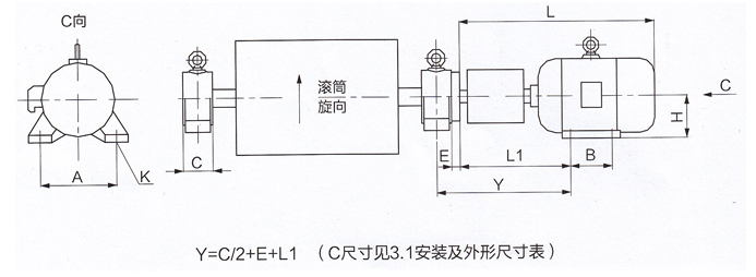 YTH型外装式减速滚筒安装外形尺寸