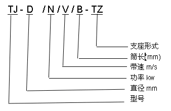 例如如订购直径400毫米、功率2.2千瓦、带速为1.25米/秒、筒长为500毫米配用Tz型支座电动滚筒的TJ型电动滚筒可简写为: