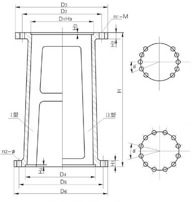 注:WJ型、DJ型、DXJ型-30A/B、35A、40B、45A四种机架底面为Ⅰ型和Ⅱ型(Ⅰ型不须标柱,Ⅱ型须在型号后面注Ⅱ、Ⅱ型a°=30°,n2-φ为12-14)其余机架为Ⅱ型(不须标注)