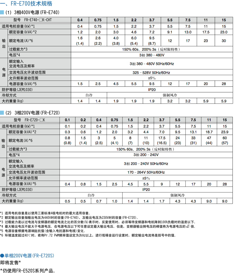 三菱FR-E700系列变频器